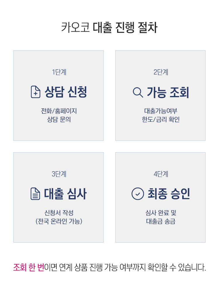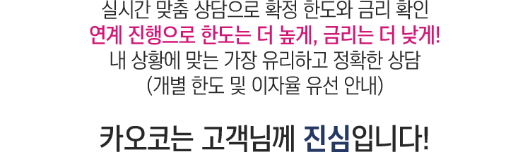 | 대출조건 | - 근로소득자 : 5개월이상 재직자로서 연소득 12백만원 이상 - 사업소득자 : 4개월이상 사업소득자로서 연소득 6백만원 이상 - 연금소득자 : 공적연금 1회차 이상 수령 및 연소득 6백만원 |