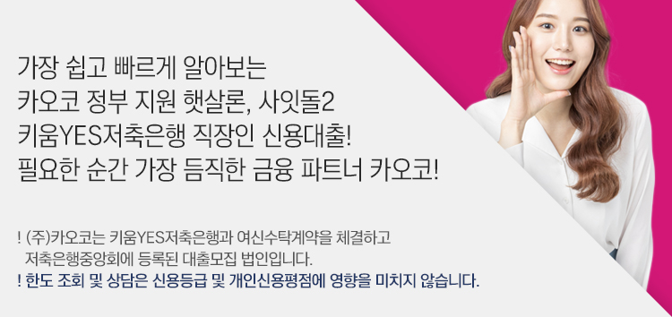 | 대출조건 | ㆍ근로소득자(근로소득 3개월 이상, 연소득 2천만원 이상) ㆍ프리랜서(소득형태 무관, 소득증빙 1개월 이상, 연소득 8백만원 이상) ㆍ소득증빙이 가능한 만 20세 이상 고객 ㆍNICE CB점수 기준 350점 초과 고객 ※단, 내부 신용평가시스템(CSS) 심사를 통과한 고객 |